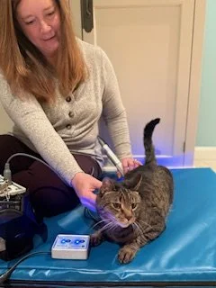 No! We can treat any small companion animal, it’s just that dogs are the most common. Many cats suffer from the same types of issues as dogs, but are much more stoic about it and symptoms often get missed. Is your older kitty having trouble making the jumps he used to be able to make? He may have osteoarthritis and/or weakness. Discuss this issue with your vet and if therapy is indicated, give us a call!